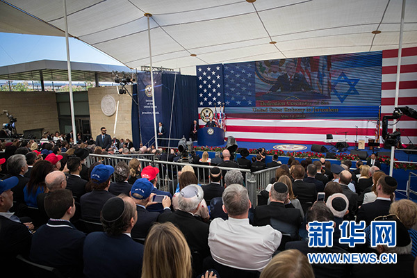 數百名官員參加了當天的美國新使館開館儀式。美國副國務卿沙利文率領美方代表團出席儀式,其中包括美國總統特朗普的女兒伊萬卡和她的丈夫庫什納,以及美財政部長姆努欽。