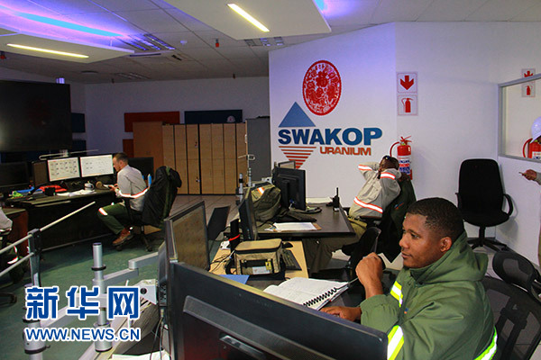 5月11日,在納米比亞西部的中廣核湖山鈾礦,調(diào)度員在水冶廠調(diào)度室內(nèi)工作。新華社記者 吳長(zhǎng)偉 攝