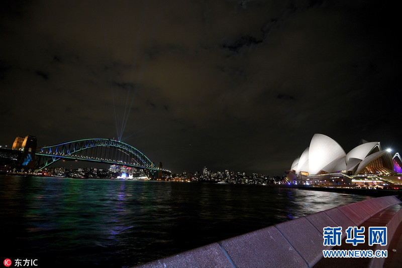 5月24日,澳大利亞悉尼,悉尼燈光音樂節舉行預展,各色各樣的燈光裝置和燈光表演美輪美奐。(圖片來源:東方IC)