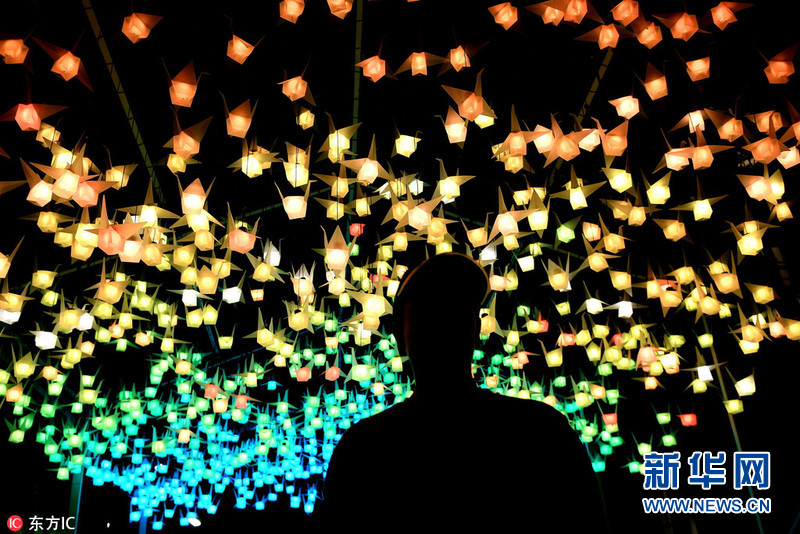 5月24日,澳大利亞悉尼,悉尼燈光音樂節舉行預展,各色各樣的燈光裝置和燈光表演美輪美奐。(圖片來源:東方IC)