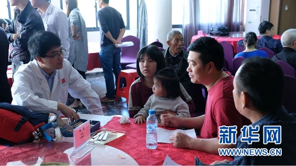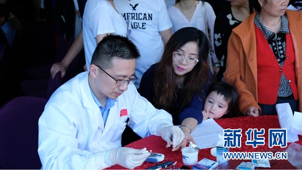 中國援摩醫(yī)療隊醫(yī)生為在摩華僑華人體檢以及提供健康咨詢。新華社記者陳斌杰 攝