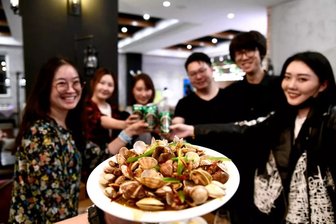 “哈啤酒、吃蛤蜊”