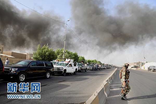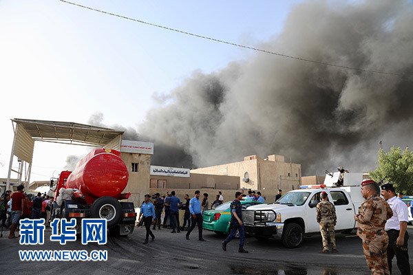 6月10日,在伊拉克首都巴格達,伊拉克安全人員和消防人員在火災現場工作。新華社發(哈利勒·達伍德 攝)