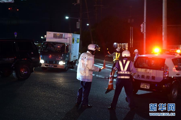 6月18日,在日本大阪,警察疏導過往車輛。據日本氣象廳消息,當地時間18日上午7時58分,日本大阪府發生6.1級地震。新華社記者馬平 攝