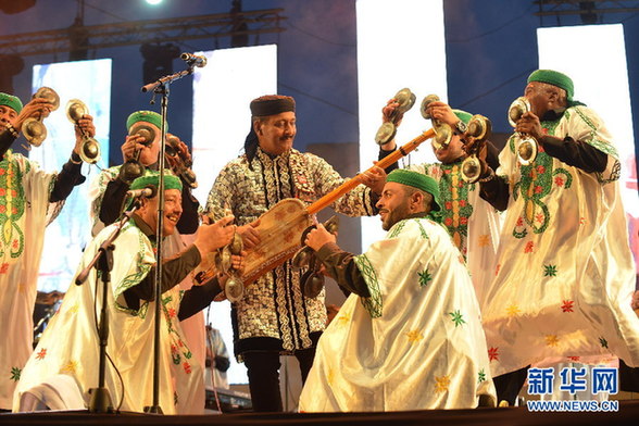 藝術家在第21屆格納瓦世界音樂節開幕式上演出。新華網發 艾薩攝