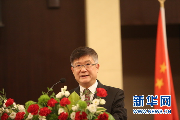 中國駐白俄羅斯大使崔啟明在獎學金頒發典禮上致辭。新華網記者 魏忠杰攝