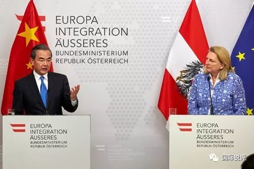 當(dāng)?shù)貢r(shí)間2018年7月5日,國(guó)務(wù)委員兼外交部長(zhǎng)王毅在維也納同奧地利外長(zhǎng)克奈斯?fàn)柟餐瑫?huì)見(jiàn)記者(圖自外交部)