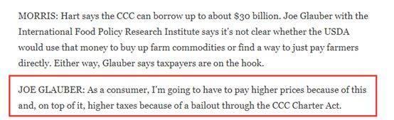 比如,一位美國(guó)愛荷華州立大學(xué)的學(xué)者就表示,單純?cè)黾愚r(nóng)業(yè)補(bǔ)貼根本無法在貿(mào)易戰(zhàn)這樣的沖突中保護(hù)農(nóng)民的權(quán)益。而另一位美國(guó)食品領(lǐng)域的學(xué)者則表示,即便特朗普政府會(huì)出面直接收購(gòu)農(nóng)民的產(chǎn)品,這些收購(gòu)的錢款還不是得從消費(fèi)者——即納稅人——的口袋里出?