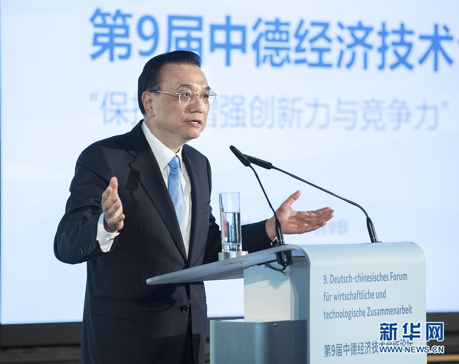 新華社柏林7月9日電(記者 王蕾 嚴鋒)當地時間7月9日晚,國務院總理李克強在柏林經濟和能源部與德國總理默克爾共同出席第九屆中德經濟技術合作論壇閉幕式并發表講話。