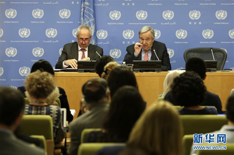 7月12日,在位于紐約的聯合國總部,聯合國秘書長古特雷斯(右)出席記者招待會。聯合國秘書長古特雷斯12日舉行記者招待會,強調多邊主義和基于規則的國際關系對于應對全球挑戰的重要性。新華社記者 李木子 攝