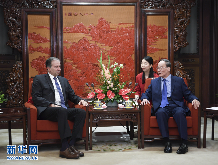 7月16日,國(guó)家副主席王岐山在北京中南海會(huì)見由黨主席斯齊亞沃尼率領(lǐng)的阿根廷共和國(guó)方案黨干部考察團(tuán)。 新華社記者 張領(lǐng) 攝