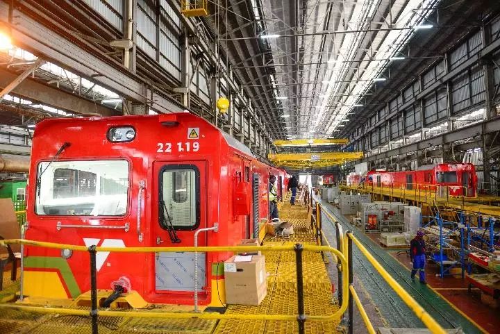 2017年7月27日,南非比勒陀利亞南非運(yùn)輸集團(tuán)工廠組裝車(chē)間,兩臺(tái)中國(guó)機(jī)車(chē)等待組裝。(新華社記者翟健嵐攝)