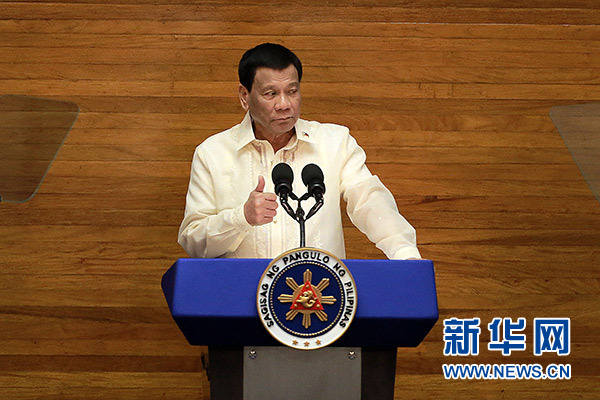 7月23日,在菲律賓奎松城,菲律賓總統杜特爾特發表年度國情咨文。 新華社發(魯埃勒·烏馬利 攝)