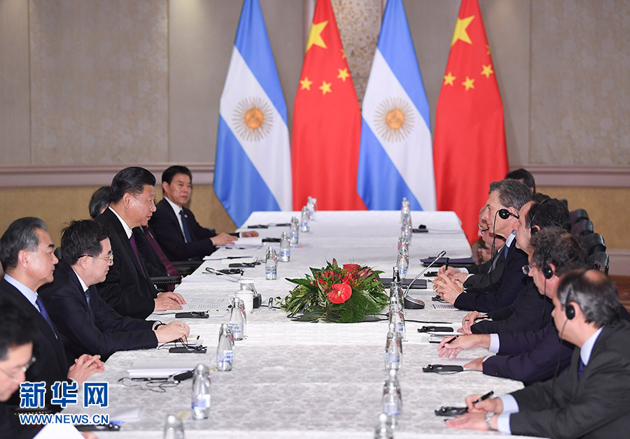 習近平指出,當前,單邊主義和保護主義抬頭,新興市場國家和發展中國家面臨挑戰增多。作為阿根廷的真誠朋友和合作伙伴,中方支持阿根廷為維護經濟金融穩定所作努力,并愿繼續提供力所能及的幫助。中方對阿根廷發展前景和中阿合作未來充滿信心。雙方要推進共建“一帶一路”,對接重要發展規劃,拓展經貿、能礦、融資等領域合作,推動貿易自由化便利化,用好合作新模式。中方支持阿方舉辦今年二十國集團領導人峰會,愿同阿方一道,為維護多邊貿易體制、完善全球治理作出貢獻。
