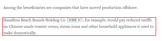 而且,部分該法案涉及的產品也不都是簡單的零部件或基礎化學品,還有不少是中國已經制作好的成品,比如烤面包機、電熨斗等家用產品。