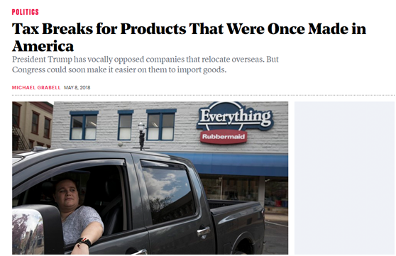 這方面,美國的《大西洋月刊》倒是在今年5月美國對華貿易戰開打前有所關注。當時這家媒體認為,這個法案展現了美國當下貿易政策的一種矛盾:一方面美國國會兩黨都希望給大企業進一步減輕關稅壓力——甭管他們的產品到底是哪兒生產的;可另一方面美國總統特朗普卻多次表示要懲罰把工廠搬到美國境外的企業。