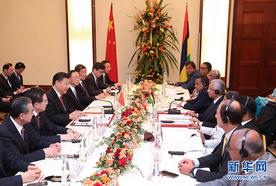 習近平積極評價毛里求斯獨立50年來取得的不凡成就,贊賞毛里求斯歷屆政府一貫秉持對華友好政策。習近平指出,中毛兩國和兩國人民友誼深厚、感情親近。中毛建交46年來,雙方政治互信不斷加深,各領域交流合作成果豐碩。中方愿同毛方始終做好朋友和好伙伴,推動中毛友好合作關系不斷邁上新臺階。