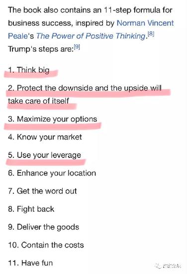 白宮及特朗普近期的表現(xiàn)看似散亂反復(fù),實(shí)際上并非無(wú)跡可循。有個(gè)重要的樣本,就是特朗普本人的作品《交易的藝術(shù)》(The Art of the Deal)。他在書中回顧自己各種交易經(jīng)歷,總結(jié)出11條重要步驟。