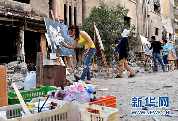 新華社大馬士革8月19日電 通訊:為廢墟作畫的敘利亞年輕人