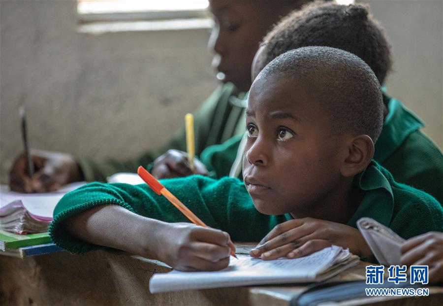 9月7日,在肯尼亞首都內羅畢,科達造夢小學的學生在上課。