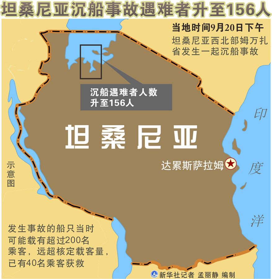 新華社達(dá)累斯薩拉姆9月22日電(記者李斯博 高竹)坦桑尼亞官員22日說,該國西北部姆萬扎省20日發(fā)生的沉船事故已造成至少156人死亡。