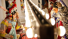9月24日晚,文萊華人社團在斯里巴加灣市中心舉辦慶中秋燈會和傳統戲曲表演,吸引民眾駐足觀賞。圖為閩劇團演員在燈會上表演傳統戲曲。杰弗里·黃攝