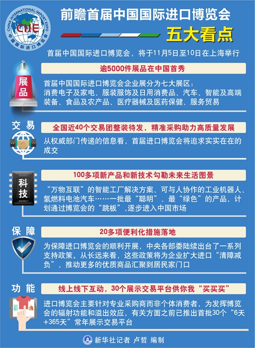 圖表:前瞻首屆中國國際進(jìn)口博覽會五大看點 新華社記者 盧哲 編制