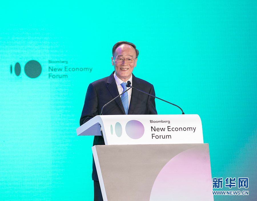 11月6日,國家副主席王岐山應邀出席在新加坡舉行的2018年創新經濟論壇開幕式,并發表題為“順應潮流,改革創新,共同發展”的致辭。 新華社記者王曄攝