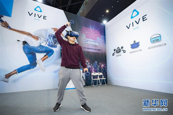 11月7日,參觀者在第五屆世界互聯(lián)網(wǎng)大會上體驗虛擬現(xiàn)實技術(shù)。當(dāng)日,第五屆世界互聯(lián)網(wǎng)大會在浙江烏鎮(zhèn)開幕。 新華社記者 才揚 攝