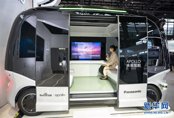 11月7日,工作人員在第五屆世界互聯(lián)網(wǎng)大會上展示搭載了車聯(lián)網(wǎng)交互系統(tǒng)的無人駕駛小巴“阿波龍”的卡拉OK功能。 當(dāng)日,第五屆世界互聯(lián)網(wǎng)大會在浙江烏鎮(zhèn)開幕。 新華社記者 才揚 攝