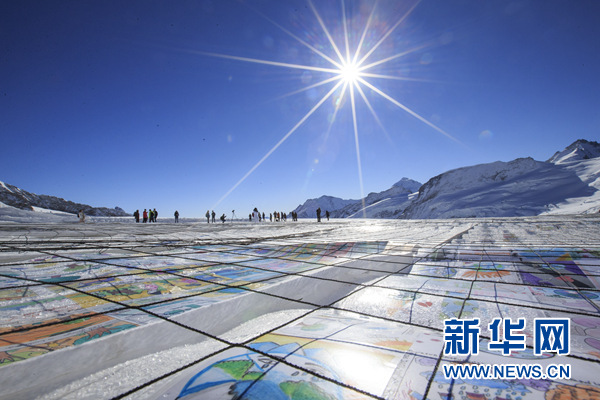 這是11月16日拍攝的瑞士少女峰下阿萊奇冰川上的世界最大明信片。 新華社記者 徐金泉 攝