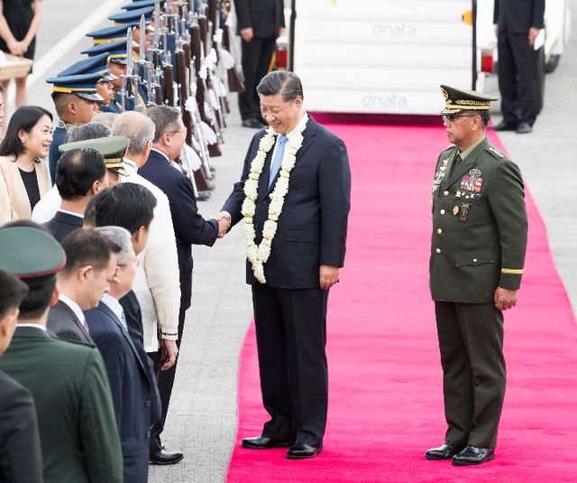 11月20日,國家主席習(xí)近平抵達(dá)馬尼拉,開始對菲律賓共和國進(jìn)行國事訪問。這是習(xí)近平在機(jī)場受到菲律賓政府高級官員熱情迎接。新華社記者謝環(huán)馳攝