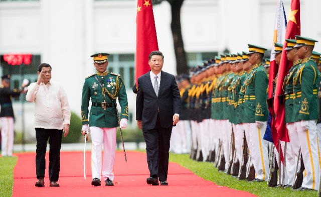 11月20日,國家主席習(xí)近平在馬尼拉同菲律賓總統(tǒng)杜特爾特舉行會談。會談開始前,習(xí)近平出席杜特爾特在總統(tǒng)府前草坪舉行的隆重歡迎儀式。新華社記者丁林?jǐn)z