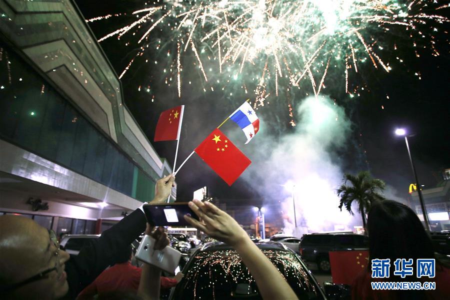 2017年6月12日,在巴拿馬首都巴拿馬城的華人社區(qū),人們?cè)诎湍民R與中國建交的慶祝活動(dòng)上拍攝煙花。新華社發(fā)(毛里西奧·巴倫蘇埃拉 攝)