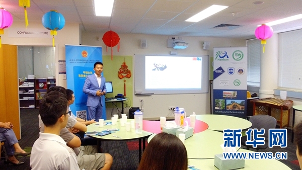 11月23日,在澳大利亞達爾文,中國駐澳大利亞使館領事部三秘潘偉華為華僑華人和留學生舉辦一場有關領事保護方面的講座。新華社發(潘翔越攝)
