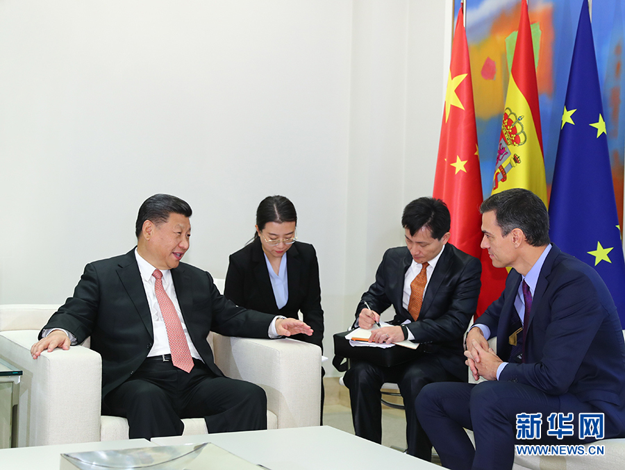 習近平強調,雙方要加強高層交往對兩國關系發展的政治引領,密切政府部門和立法機構交往合作,深化政治互信,繼續在涉及彼此核心利益和重大關切問題上相互理解、相互支持,推動兩國關系行穩致遠。中西開展“一帶一路”合作具有歷史、地理等多重優勢,要加強“一帶一路”倡議同西班牙亞洲戰略、地中海走廊建設等對接,促進經貿往來,拓展港口、航運、航空、新能源汽車、金融等領域合作,優化科技、創新合作。雙方要深化人文交流,加強文化、地方、旅游、新聞、醫療、文化遺產保護、體育等領域交流合作。中國愿同西班牙繼續就完善全球治理、應對氣候變化等國際和地區熱點問題保持溝通和協調。