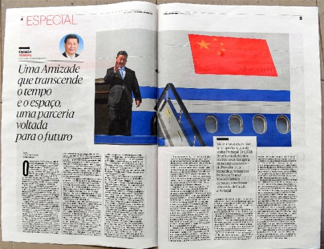在對葡萄牙進行國事訪問前夕,習近平主席在葡萄牙《新聞日報》發表題為《跨越時空的友誼 面向未來的伙伴》的署名文章。(新華社記者章亞東、孫奕攝)