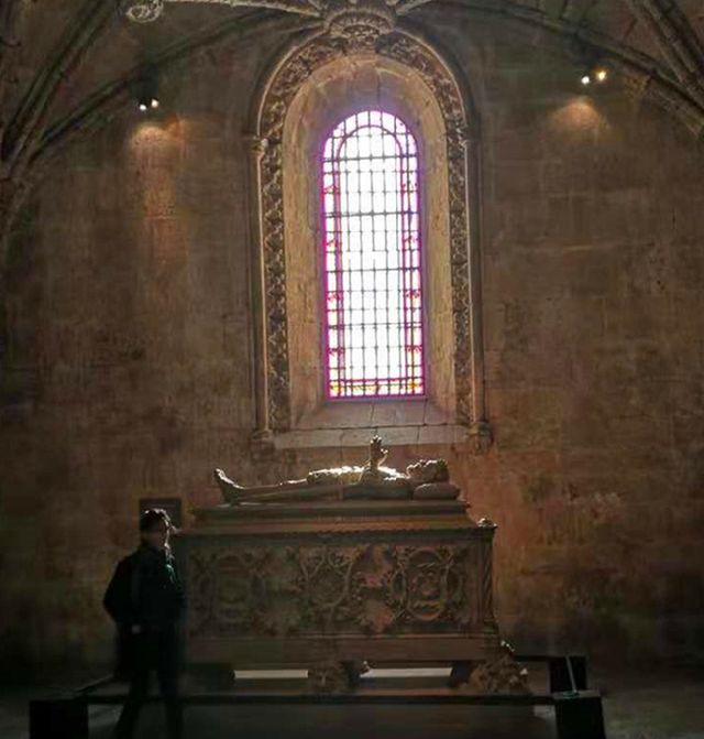 安放于里斯本熱羅尼姆斯教堂的卡蒙斯之墓。(新華社記者錢彤攝)