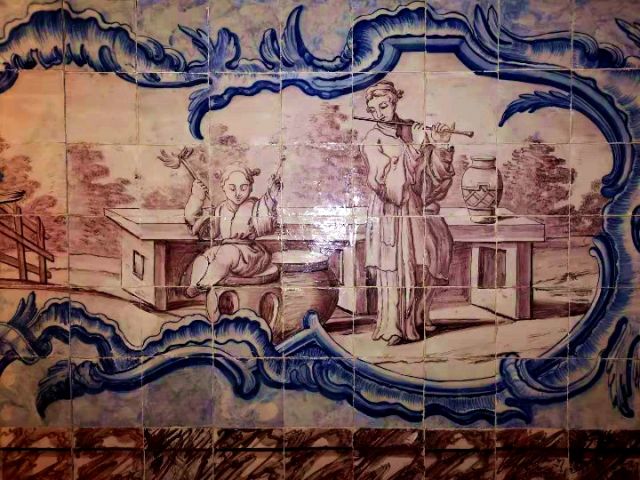葡萄牙瓷磚畫展現的中國人生活場景。(新華社記者錢彤攝)