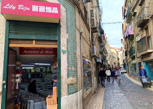 位于里斯本市中心附近的的華人商鋪街區。(新華社記者孫奕攝)