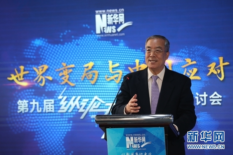 2019年1月10日,新華網第九屆“縱論天下”國際問題研討會成功舉行。圖為中國太平洋經濟合作全國委員會會長蘇格在進行主旨演講。新華網 郭小天 攝