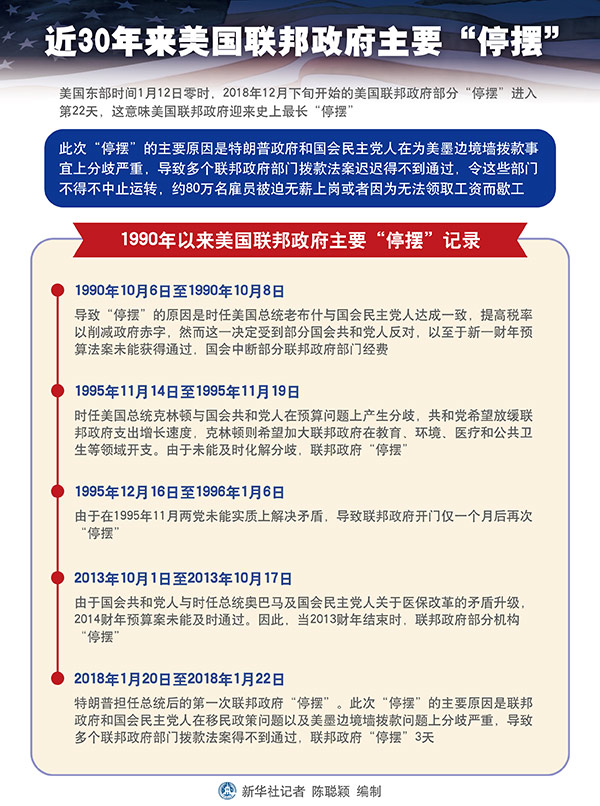 圖表:新聞背景:近30年來美國聯邦政府主要“停擺” 新華社記者 陳聰穎 編制