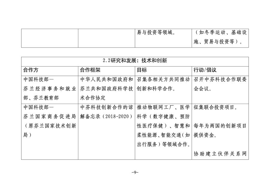 關于推進中芬面向未來的新型合作伙伴關系的聯合工作計劃(2019-2023)