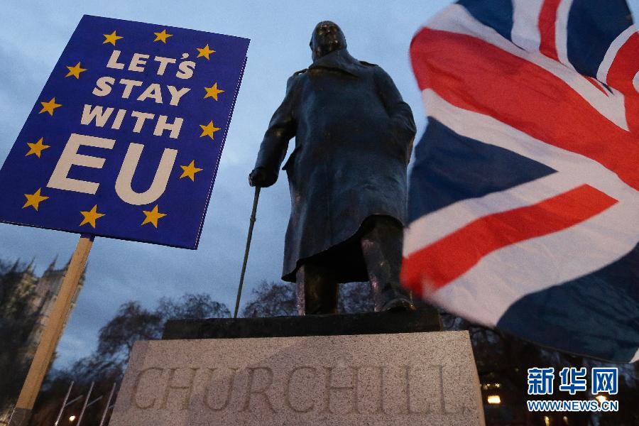 1月15日,在英國(guó)倫敦,民眾在議會(huì)大廈外的英國(guó)前首相丘吉爾雕像前參加集會(huì)。 英國(guó)議會(huì)下院15日投票否決了此前英國(guó)政府與歐盟達(dá)成的“脫歐”協(xié)議。在經(jīng)過5天辯論后,英國(guó)議會(huì)下院15日以432票反對(duì)、202票支持的投票結(jié)果否決了“脫歐”協(xié)議。 新華社發(fā)(蒂姆·愛爾蘭攝)