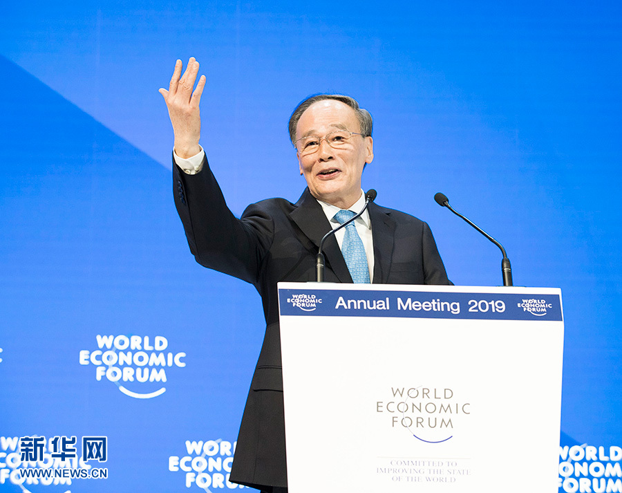 當地時間1月23日,國家副主席王岐山出席達沃斯世界經濟論壇2019年年會,發表題為“堅定信心,攜手前行,共創未來”的致辭并回答提問。 新華社記者 黃敬文 攝