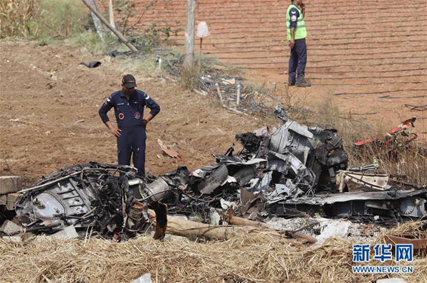 2月19日,在印度班加羅爾,軍人在墜機現場查看。新華社發