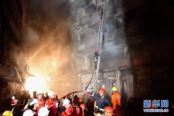 達卡市消防部門從20日夜間開始滅火工作到21日。消防部門官員馬赫福茲·里文對新華社記者表示,目前仍有37支消防隊在現場滅火。