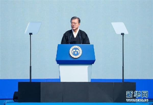 3月1日,韓國(guó)總統(tǒng)文在寅在首爾舉行的“三一運(yùn)動(dòng)”100周年大會(huì)上發(fā)表講話。 韓國(guó)總統(tǒng)文在寅1日在首爾光化門廣場(chǎng)出席紀(jì)念“三一運(yùn)動(dòng)”100周年大會(huì)時(shí)發(fā)表講話表示,韓國(guó)將力推構(gòu)建“新半島體系”,實(shí)現(xiàn)韓朝之間共建“和平合作共同體”和“經(jīng)濟(jì)合作共同體”。新華社記者 王婧嬙 攝