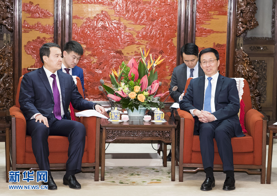 韓正表示,中哈是友好鄰邦和全面戰(zhàn)略伙伴。在習近平主席和納扎爾巴耶夫總統(tǒng)的戰(zhàn)略引領和親自推動下,中哈關(guān)系保持高水平運行,已成為國與國之間和睦相處、互利共贏的典范。雙方高層交往密切,政治互信不斷增強,共建“一帶一路”成果豐碩。希望雙方進一步發(fā)揮好中哈合作委員會重要作用,加強發(fā)展戰(zhàn)略對接,推進經(jīng)貿(mào)、投資、海關(guān)、金融等領域務實合作,支持兩國企業(yè)按商業(yè)化市場化原則加強項目合作,推動中哈合作不斷取得新進展。