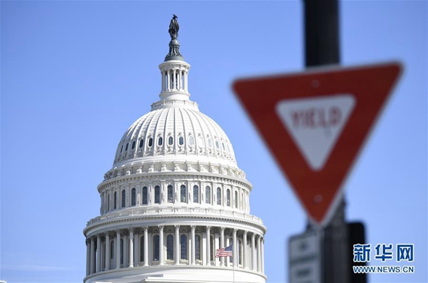 這是3月14日在美國首都華盛頓拍攝的國會山。美國國會參議院14日通過一項決議,叫??偨y特朗普此前宣布的美國南部邊境進入“國家緊急狀態”。 新華社記者劉杰攝
